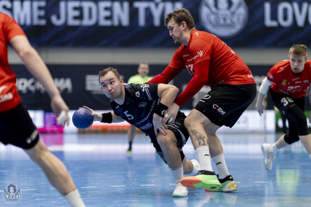Neproměňování velmi dobrých až vyložených šancí – to byl pro Lovce největší problém první půle, který měl za následek pouze jednobrankové poločasové vedení. Osm čistých šancí z prostoru šestky (mimochodem stejné číslo svítilo na ukazateli zahozených šancí i v poločase druhém, ve kterém jsme ale dokázali vstřelit sedm branek z křídla oproti žádné v prvním poločase) neproměnili Lovci tváří v tvář velmi dobře chytajícímu brankáři hostí Štohanzlovi. Díky jeho zákrokům se Lovcům nedařilo odskočit a efektivně hrající soupeř s námi držel neustále krok.